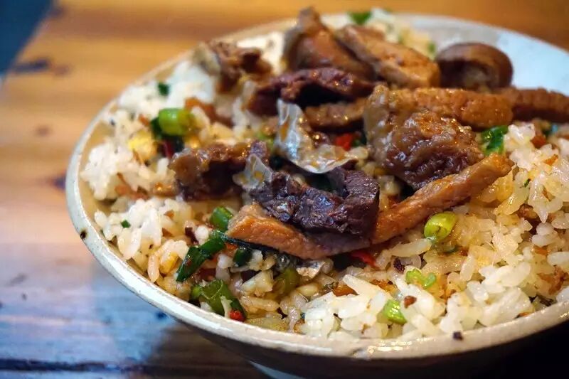 这么下饭的东西不来碗饭配怎么能行,盖帮的蛋炒饭又是个能单独提出来表扬的玩意了。美食达人膝盖哥不管去哪里吃饭,必点蛋炒饭,这也练就了他对蛋炒饭的独特见解。不管,必须先人手一碗才行哈。