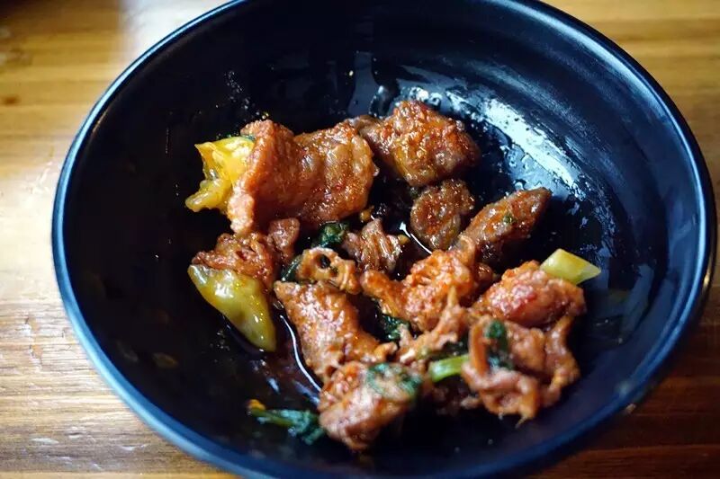 都说每家串串除开味道好外,都要有自己独特的亮点才能让食客们记住,盖帮不仅在锅底上下了功夫,菜品上更是让帮主抠烂了脑壳。看这牛肉,香菜牛肉,野山椒牛肉,原味牛肉,码的之嫩气,是最先熟的菜品之一,嫩嫩的牛肉香瞬间充满整个口腔,一把把不要停哈。