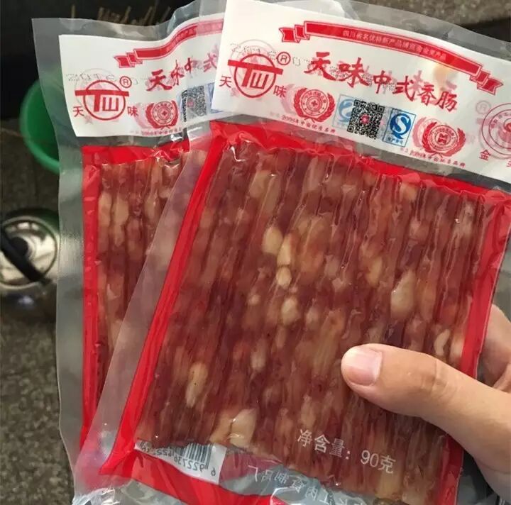 大家都知道小香肠来自宜宾,所以帮主就宜宾拿货!天味小香肠,宜宾最好的牌子,几乎宜宾上档次的不偷工减料的店都在用,无淀粉无香精。不吹牛皮哈,入口就知有没有。