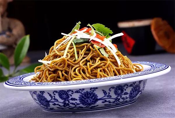 泼油:锅内放菜籽油60g,烧至100℃,迅速泼在辣子面上,放上肉臊子,再加入调好的味汁。