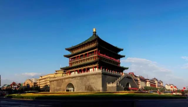 历经岁月沧桑,如今巨鼓早已不存,惟余鼓楼巍然耸立。钟楼上每天都有编钟表演,而展出的齐白石亲赠书画也颇为珍贵。夜景时恢弘大气,仿若梦回唐朝。
