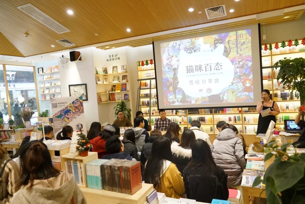 12月24日,身为《猫咪百态》主编的我前往西安,同在陕西的两位书中作者Robin三水和小刺猬,在猫的天空之城概念书店开展了第二场签售活动。