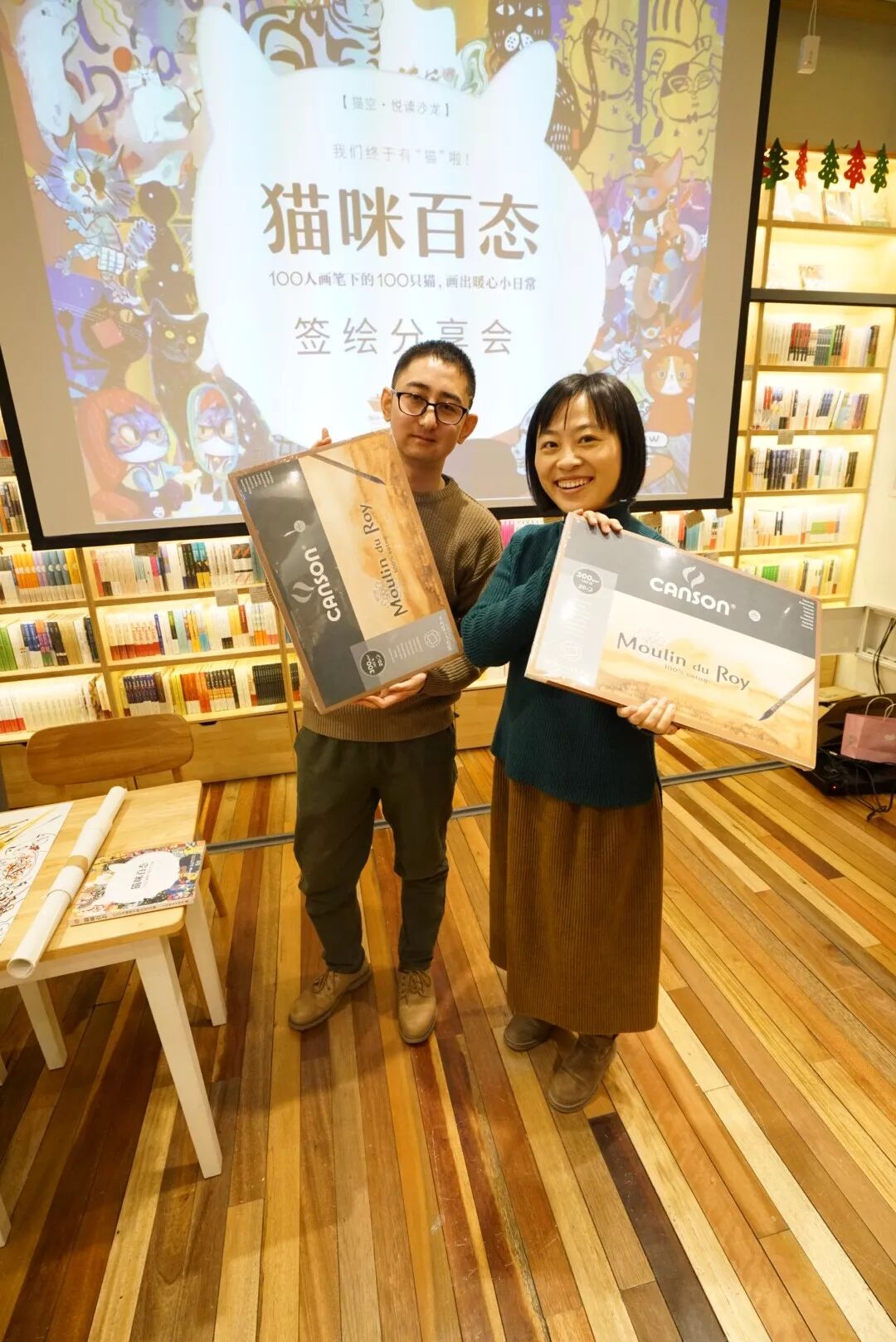 两位作者嘉宾手持康松莫朗本进行合影