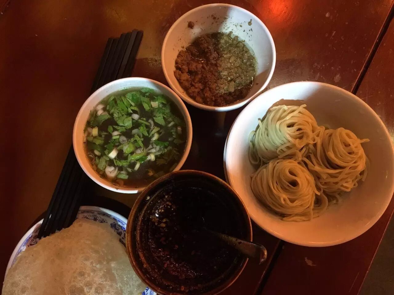干拌臊子是一种吃饭,面团在酸汤里过一下,再拌臊子是第二种吃法,叫过桥面,还有一种就放在酸汤里面就是酸汤面,辣油可以随便加。酸汤很酸爽,开胃。14块钱一份,价廉物美。