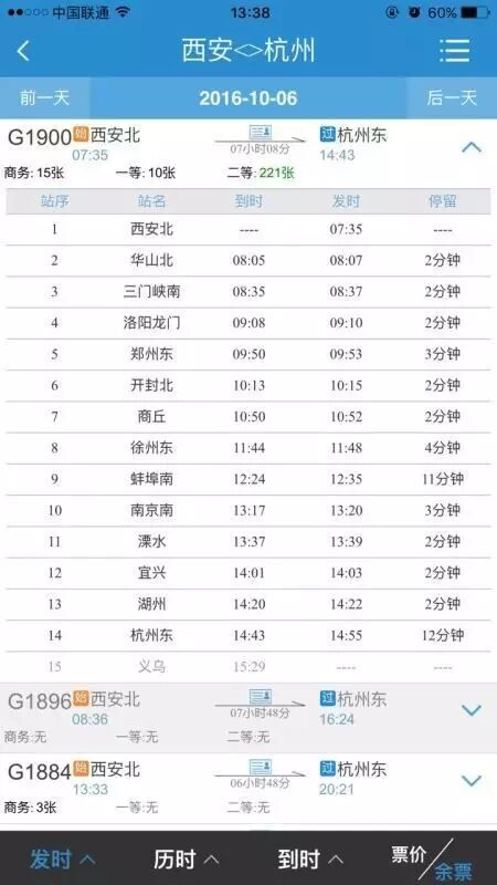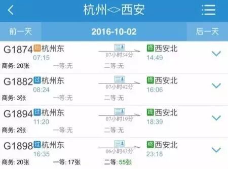 杭州-西安的往返高铁票已经没票了!