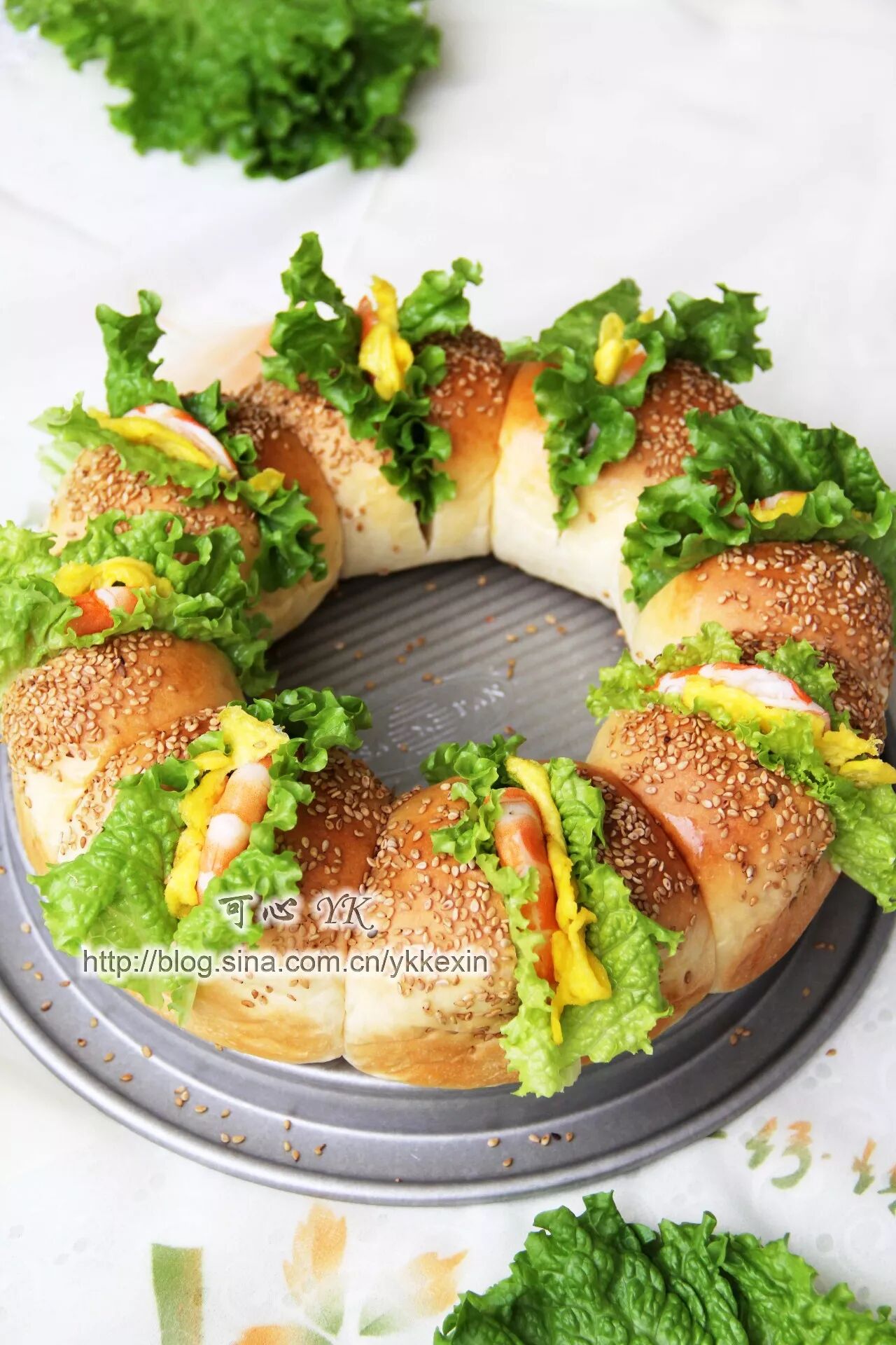 当然了,今天平安夜,小煮也要给大家应应景,由美食达人可心为大家带来的圣诞花环汉堡,大家往常见到的圣诞花环都是面包(如下图)(๑╹◡╹)ノ"""![]()