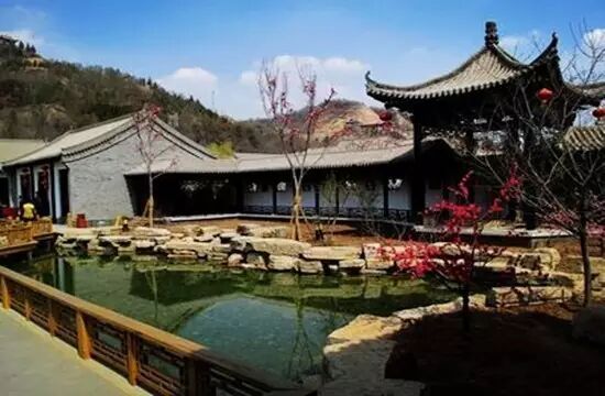 石源园林山庄是一座以千姿百态的奇石、美石而著称的庭院,是一片不显山露水却胜似皇家园林的生态园。这里将宗教元素与奇石结合,门外半山腰上,一尊镀金的巨大观音像在阳光下散发着光芒。贾平凹手书“石源”两个字,就在门楣之上,不肥不瘦,顺眼顺心。招牌菜烤全羊要提前几个小时预订。