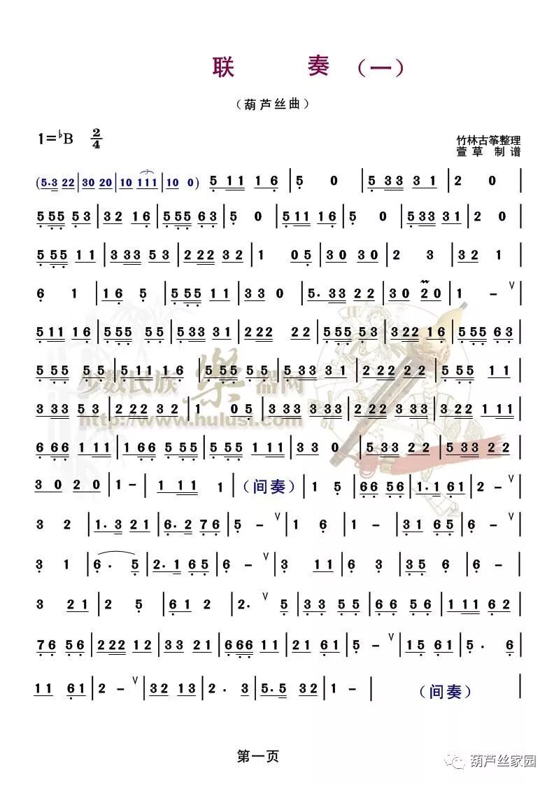 葫芦丝《丝竹韵》伴奏+曲谱