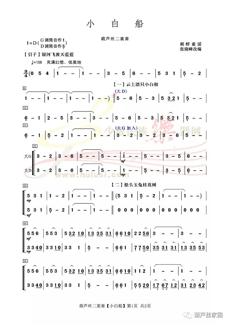 葫芦丝《小白船》伴奏