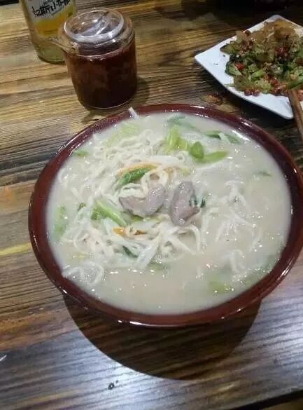 还有面食以及烧烤类的,推荐炝锅面,面里面芹菜、青椒、豆芽、豆角各种时蔬,和羊肉丝爆锅,加上香浓醇白的羊汤。店内还提供多种小菜,搭配面食简直是绝配,关键是还非常的实惠,吃饱的同时还没花多少钱,这不是太划算了!