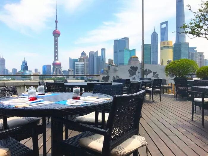 米氏西餐厅在外滩一开就开了十年二十年,正对陆家嘴的天台,外滩的美景尽收眼底,很多人在这里拍照。