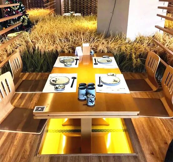 有趣的混搭风。店铺外还有一个仅供观赏的吧台,工业风时尚感十足。而店内则是传统的中餐厅风格,典雅、温馨。