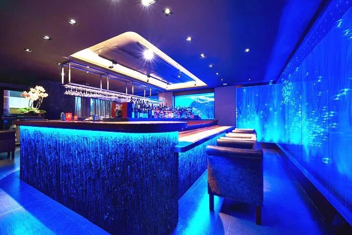 走进店内,会有一种别有洞天的感觉。蓝色水族主题的大堂酒廊营造出一派海洋氛围。