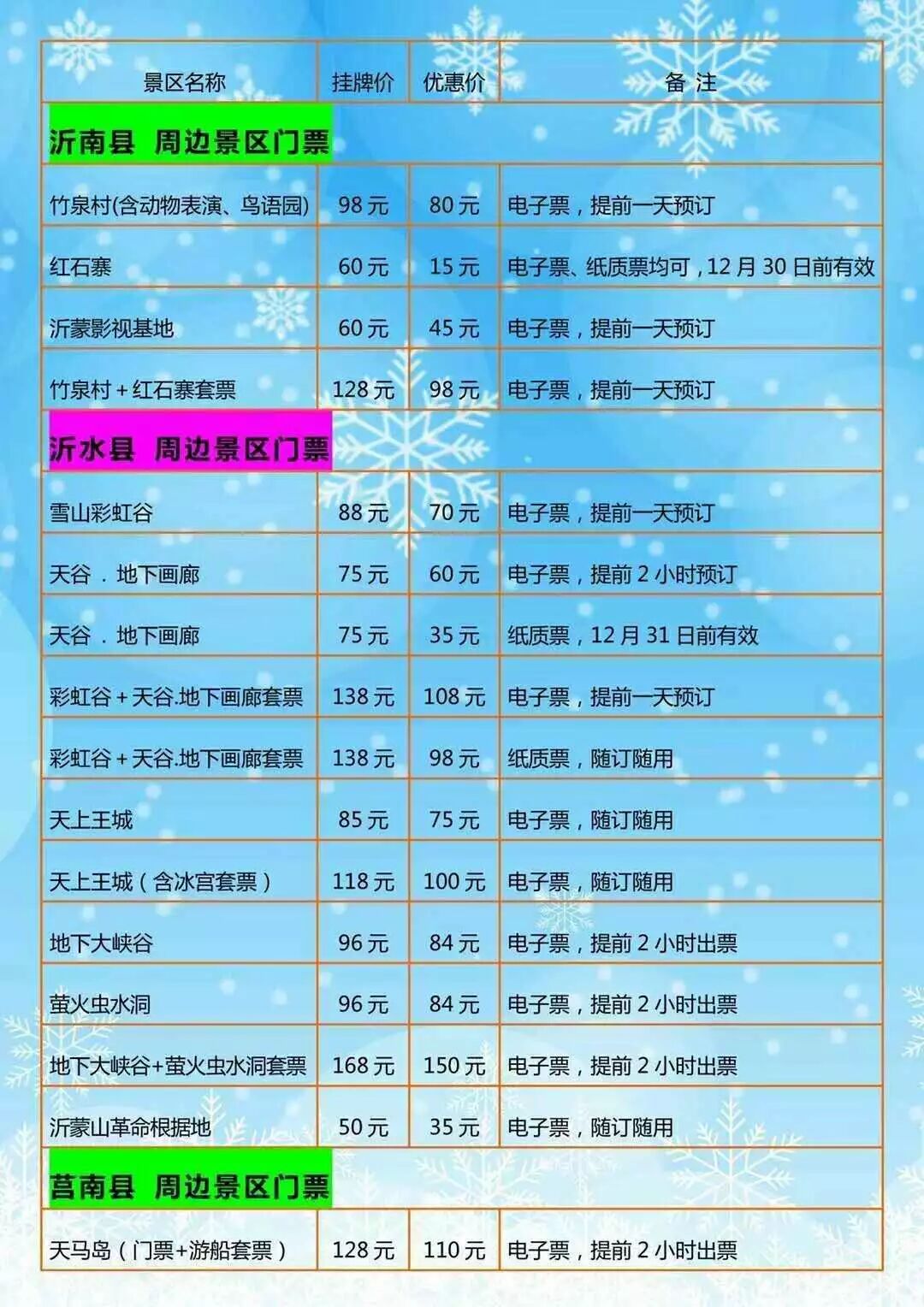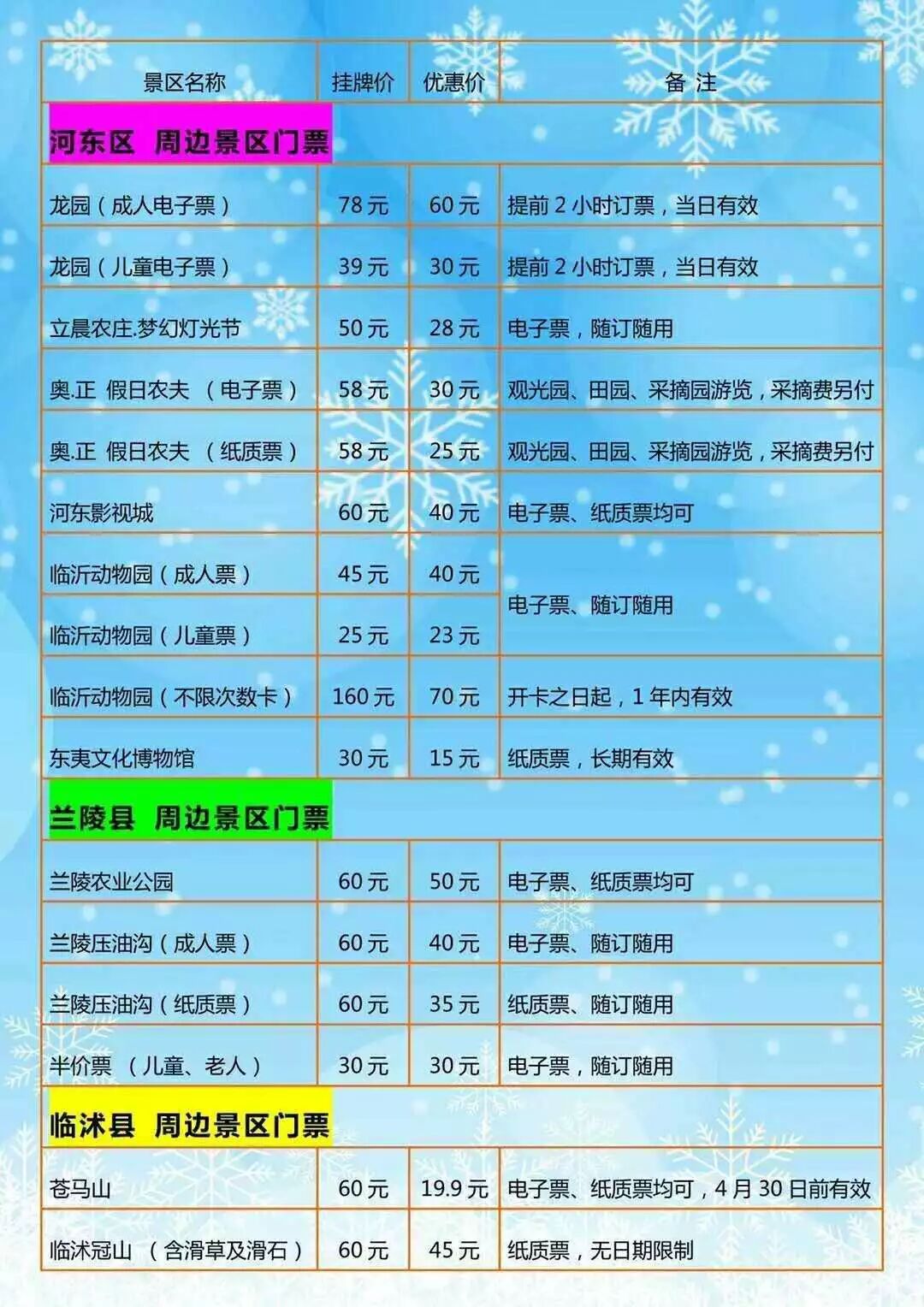 批发零售临沂市内及周边景区电子票