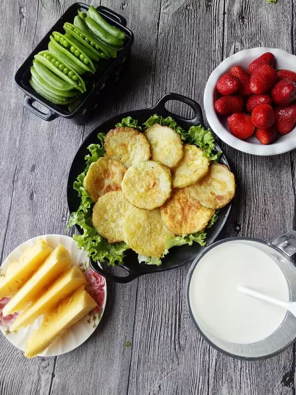 4. 起锅热少许油,西葫芦片裹上蛋液煎至两面金黄即可。