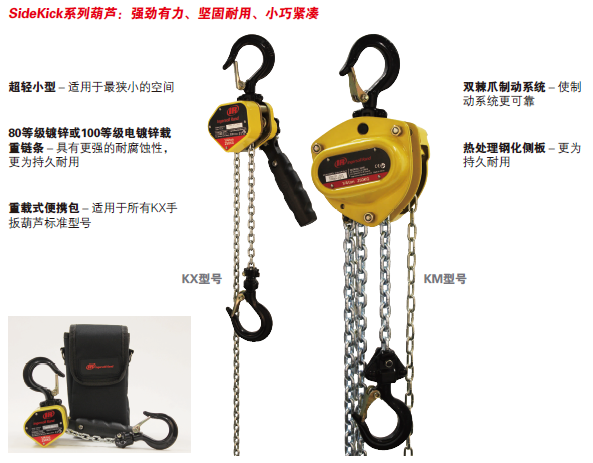 去年的早些时候,英格索兰曾在亚特兰大举行的MODWX展会上介绍过Kinetic系列手扳环链葫芦。