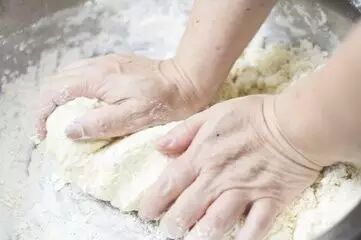 还有一次,因贪玩面发过又稀留又黏,我用切面刀从和面盆中往外挖粘了一刀。三昏六迷糊用手将粘在刀上面往下刮,不知怎么搞竟将左手小拇指划了一个深深的口子,血流出来将好大一坨面染红了,洒了许多面朴也止不住。多亏咸阳民族学院的马阿姨来看我,才带我去医院进行了包扎,回来帮我将一锅馍蒸好。 裹住受伤的手指还拿个馍对同学炫耀,"看血馒头"!到现在留在左手小拇指的斑痕还不时提醒着,干啥都须小心,干啥都不容易。