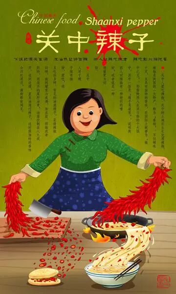 虽说湘川能吃辣,老陕吃辣让人怕,辣面拌盐热油泼,调面夹馍把饭下。