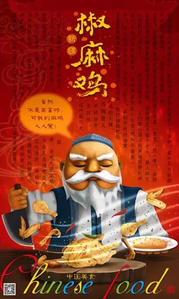 当年,在新疆乌鲁木齐南关财神楼(现南关清真二食堂门前一带),由回族宋师傅设摊经营的椒麻鸡名扬全城。宋师傅是个矮个老头,熟人都开玩笑称他“宋矬子”,一提起吃椒麻鸡,人们都会异口同声地称赞财神楼子宋矬子做的味最美!宋师傅家住在小东梁(现和平南路一带)。每天快到中午时,他就挑上担子,将制作好的油黄发亮的椒麻鸡挑到财神楼固定点销售,他仔细地把每只鸡的大腿、鸡胸脯从中间分开为两件,这叫做四大件;两个鸡翅膀、鸡脖子和鸡尾部分为四小件,每只鸡都分成八件。并用大瓷盆煨着半盆卤汤,冬天盆下有煤火,多会儿卤汤都是热的,远远就香气扑鼻。夏季还可以吃凉的。鸡的大小件价格各异,任顾客挑选。宋师傅制作的椒麻鸡讲究熟、烂、鲜、香,色形味俱佳。用细瓷红花小碟盛上鸡大腿然后再浇上两小勺卤汤,那滋味是极醇厚的。