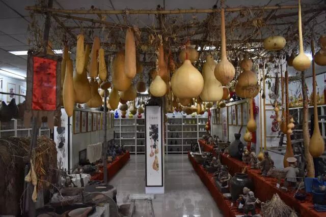 “时代发展变迁”和“社会文化生活”是葫芦文化馆布局的两条主线,又分为神话传说、农耕文化、渔牧文化、工业文明、文房四宝、文学故事、婚育文化、市井文化、写意葫芦、异域风情等十余个版块,还原了“身背葫芦脚踩蒜,手拿笤帚扫灾难”民间辟邪除害的场景;用微缩景观重现了合卺、葫芦定亲、婚育和送瓜求子等各民族的葫芦婚庆习俗;还根据一些老人的回忆复原了葫芦醋端子、酒端子等物件。通过老物件、老照片和泥塑人物微缩景观等形式,生动地再现葫芦在历史发展和社会生活中的地位价值。