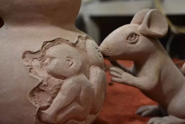 拉祜族的葫芦情结与其历史传说有关,馆里的一组陶制场景完整展现了这一神话传说,传说厄莎神开天辟地,创造日月,创造了孕育人类的葫芦籽,始祖扎迪和娜迪从葫芦里出来繁衍了人类,从此有了拉祜族。相传,一只葫芦滚落到大河里,乌龟见到后好心将其驼到山上,小米雀和老鼠将葫芦啄开,从葫芦里走出一对男女,名叫扎迪和娜迪。他们成为拉祜族的祖先,孕育繁衍出了拉祜族后代。因此,葫芦变作为拉祜族人民的图腾被崇拜。