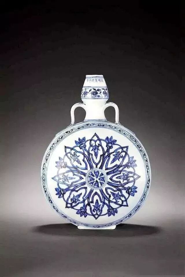 明代永乐、宣德时期。景德镇流行烧造一种葫芦扁瓶,在瓶身上下两侧安放两字绶带耳。其用处一是为了装饰,二是便于提拿。而这种瓶自古叫做绶带耳葫芦瓶,“绶”与“授”同音,“授”在汉字中解释为给予、传授、传承之意。“教授”就是传授知识人。“带”与“代”同音,“绶代”就是传授给后代。绶“绶”与“寿”同音,人们历代将多福、高禄、长寿作为衡量人生最大幸福的标准,长寿是人们的追求之一,真是寓意双关,也可以解读为“绶代福禄”、“寿代如意”