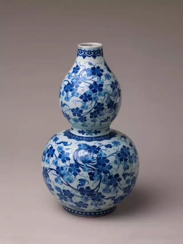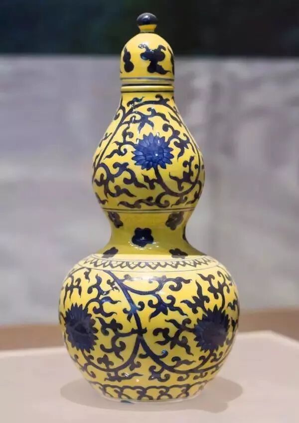到了明代嘉靖时期,葫芦瓶造型开始发展到了顶峰,主要跟嘉靖皇帝朱厚熜的个人好恶有关,因为他非常迷恋道教。古人认识世界,认为天是圆的,地是方的,天灾上,地在下,就成了“天圆地方”思想。葫芦是道家八宝之一,为八仙之一铁拐李所持宝物,能炼丹制药,普度众生。人们常称道家八宝为“暗八仙”。葫芦与道家有着千丝万缕的联系,而葫芦纹主体的造型也恰似两个对称的数字“3”。