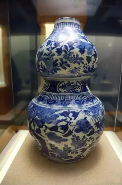 自明代嘉靖、万历以来,瓷器艺术品在装饰上都弥散着极重的吉祥如意的氛围,从而使明代晚期成为陶瓷葫芦瓶大放异彩的时期,其生产达到空前勃兴的程度,不仅数量巨大,而且造型极为繁多。除普通的上下 圆形外,还有四棱形、六棱形、天圆地方(上圆下方)形、直口形、撇口形、带盖式、壁式等等,不过未见有元青花中的八棱式样,品种主要为青花和五彩。一直到明末天启、崇祯时葫芦瓶生产开始大幅度消退,此时的葫芦瓶造型以长颈敞口式为主,造型极为优美规整、清秀端庄。