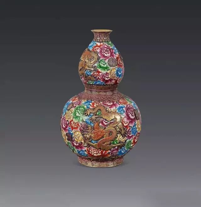 珐琅彩百花龙纹描金葫芦瓶(清. 乾隆)