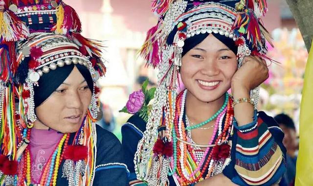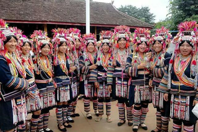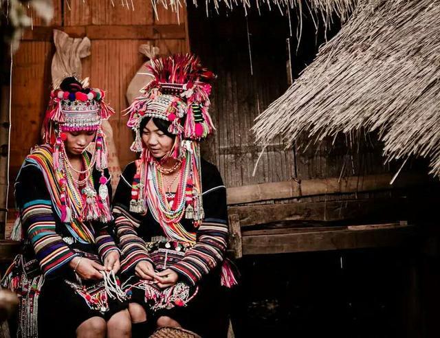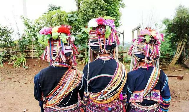 爱伲族妇女服饰,鲜艳瑰丽,热烈纯美,极好烘托出了民族爽直开朗,热情好客的气质和形象。 阿卡服饰的色彩、款式和纹样,既是其生存区域地理环境的折射,也是社会身份和角色的标识。