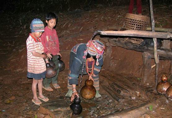 大的葫芦则当作盛水容器,他们每日凌晨到寨后森林山泉,装满泉水背回家中使用。