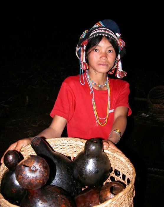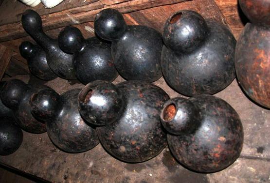 经熏烘后的葫芦黑得发亮,经久耐用,不驻虫,盛放在内的东西不变质,成为山寨村民家家必备实用的物品,也成为老寨一道独特的景色。