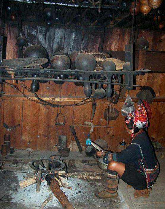 山寨村民家家必备的火塘,成为生活、休息,村民沟通交流的中心。每家火塘架上方倒扣熏制的,大小不一的葫芦,与火塘相印,成为一道吸引眼球的风景。经烘熏制成成品的葫芦,成为山寨村民生活中必不可少的日常用品。