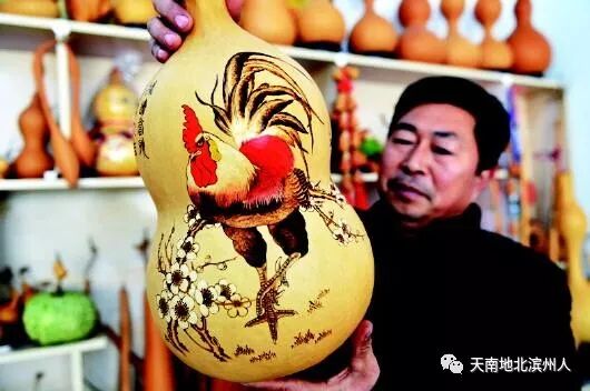 方以忠连续8年参加全国葫芦文化艺术节,2014年,方以忠的葫芦烙画技艺被列入滨州市“市级非物质文化遗产”名录。人们口中,方以忠的外号由“葫芦娃”变成“鲁北葫芦王”。