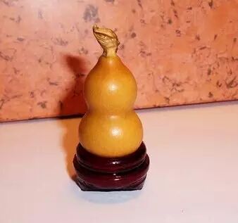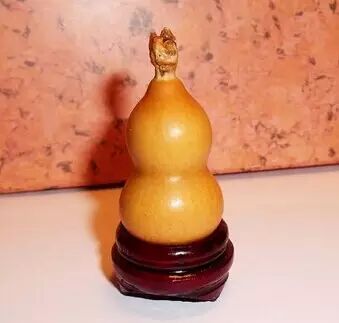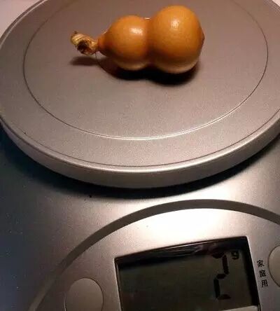 2、皮质老熟——自然情况下,皮质、皮色看着越老越深,说明葫芦的成熟度高,皮质就越好;下面是一张微距特写:这只小葫芦在书柜里摆放了一年多,没有拿出去晒过,也还没正式上手盘过,皮质干净一汪水,皮色也比较润泽饱满。3、龙头粗壮——葫芦的藤蔓越粗壮、结实,说明葫芦的成熟度高,品质就越好;从上面的照片可以看到,这个小手捻有个短龙头,虽然小巧,但是藤蔓非常强壮、结实。我个人最喜欢这样的短龙头,美观、结实、简洁,非常适合上手把玩——不用担心龙头会在盘玩过程中损伤。4、分量沉手——在相同的高度和体积下,葫芦重量越大,说明成熟度越高,皮质更加细密紧实,品质会更好。这个小葫芦净高3.5厘米(照片以7号电池为参照,电池高4.2厘米),身材小巧,属于袖珍级的小手捻,而重量达到了2克。根据个人经验,3-3.5厘米左右的葫芦大都重量在1克上下,这个短龙手捻的重量远超过一般水平,而且还有晃仔声,说明成熟度非常好了。