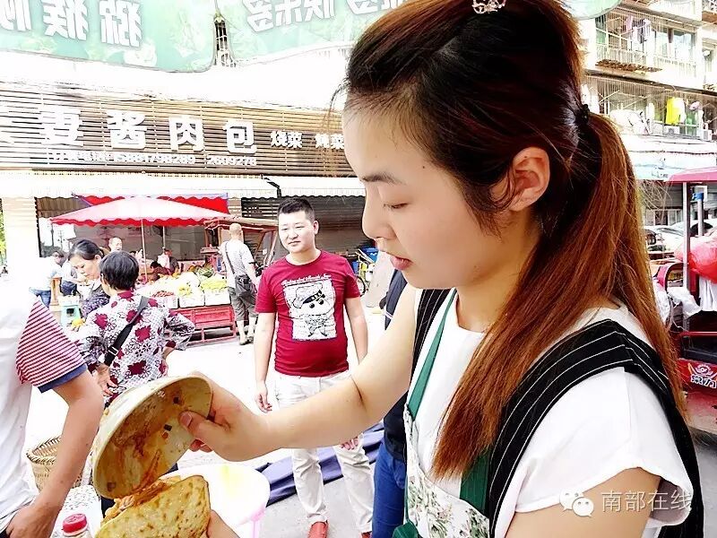 【快来围观哟 南充市西华路新华食府旁边有个“锅盔西施”】你要是认为打锅盔的,都是中老年人、男人,就大错特错了。在南充市西华路新华食府旁边打锅盔的,就是一名身材高挑、肤白貌美的美女。人们称她为“锅盔西施”。“锅盔西施”名叫曹莉,芳龄20多岁,南部县河坝人。曹莉在外打工几年后,决定回家乡创业。她拜南充“方锅盔”名师赵姐为师,学习锅盔制作技术。3个月前,曹莉出师,在新华食府旁边摆起锅盔摊摊。由于小曹形象气质佳, 锅盔口感香酥脆,生意一直不错。