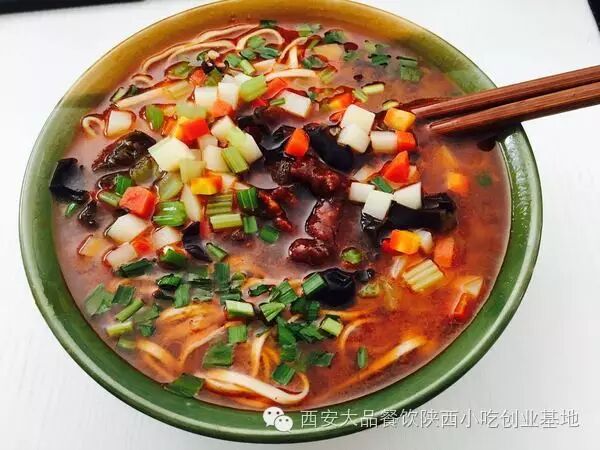 北方人,很喜欢吃面,在这里提到岐山哨子面别有一番心情!酸辣香,煎稀汪,薄筋光,是臊子面的9个特点,大品的师傅做的很地道,汤酸面劲,西安很多小店的臊子面做的不地道,不正宗,吃起来很寡淡,所以学习技术就要到好的地方去,不然做出来的不好吃,生意也不会长久的。