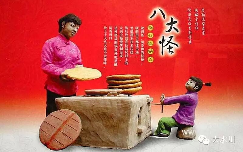 相传周文王伐纣时锅盔就被用做兵士的军粮,在陕西西府一带,至今还有一个锅盔品种叫“文王锅盔”。锅盔,到了秦代更是被发扬光大、普及推广。秦人制作的锅盔,个儿大、饼厚、瓷实。据说锅盔最初不叫锅盔,因其外形酷似树墩的横截面,因而被叫做墩饼。当时秦军行军时士兵配发的墩饼,一个都有五六斤重,一个墩饼的直径大约在50—60厘米左右,厚度也都在15厘米左右。而且士兵的携带方式也很独特,两个墩饼为一组,在每个墩饼上钻两个眼儿,用牛皮绳系好,前胸、后胸各搭一个,如同民间过去常用的褡裢一般。