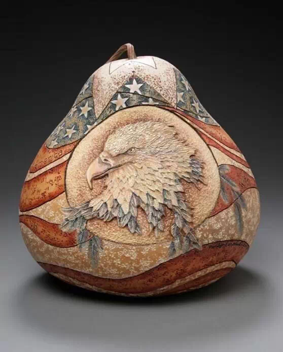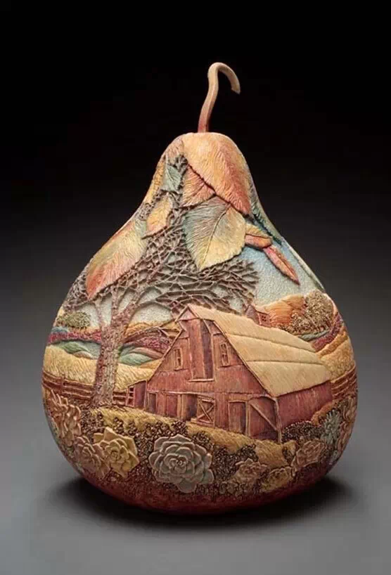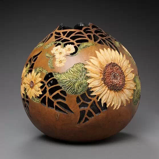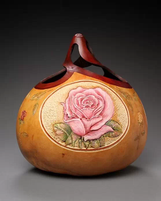 亚腰葫芦在外形上看是由两个球体组成,象征着和谐美满。将其和现代工艺画融合在一起,极具观赏价值。