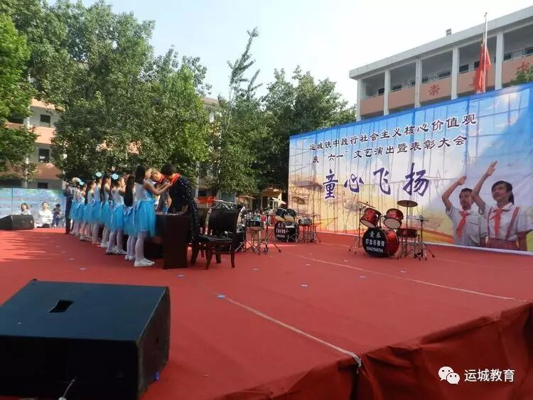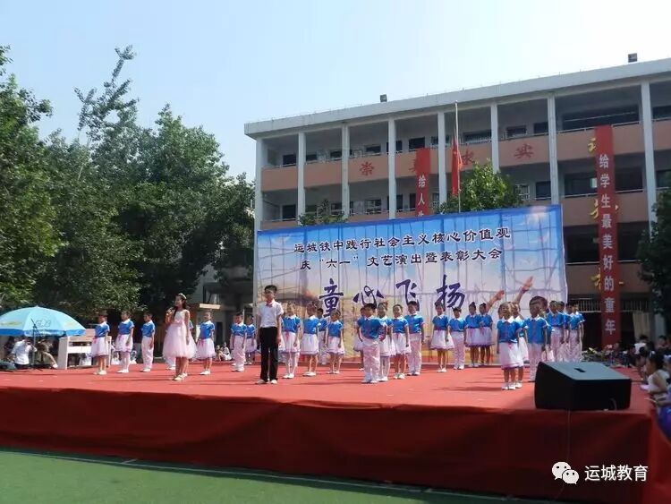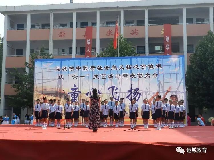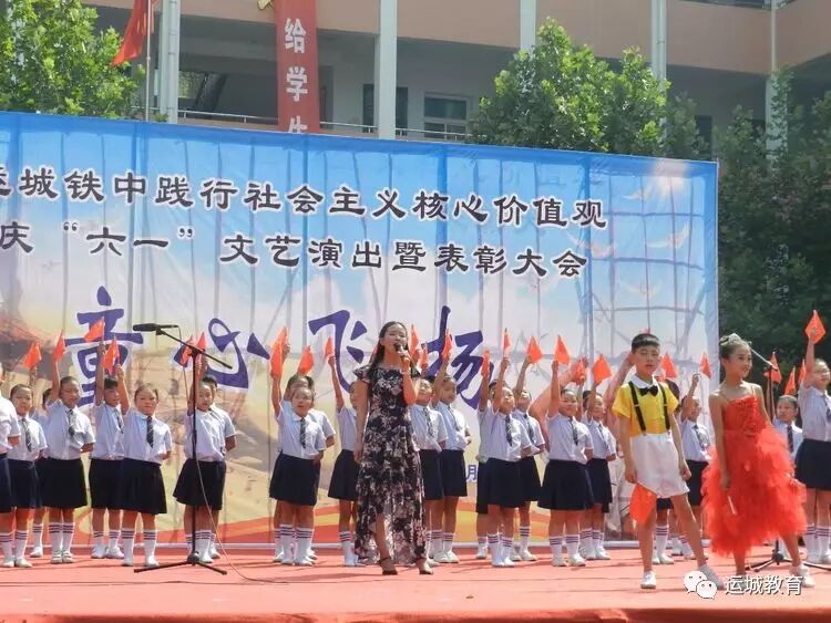 6月1日,,童心飞扬表彰暨文艺汇演璀璨上演。我们学校本着以人为本,体现欢乐的主题,让儿童有一个美好的童年为出发点,组织全体少先队员开展了一系列庆祝活动,活动形式多样,内容健康有趣,既丰富了孩子们的节日生活,又起到了教育作用。现将我校系列活动开展情况总结汇报如下: