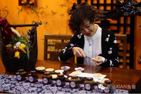 主角出场!希嫣鱼酱,1度到7度,外加獐子岛·希嫣纯三文鱼酱,一共8个!看咱们希嫣第一网红丁妈夹鱼酱的神情,这哪是美食,简直就是工艺品的嘛!