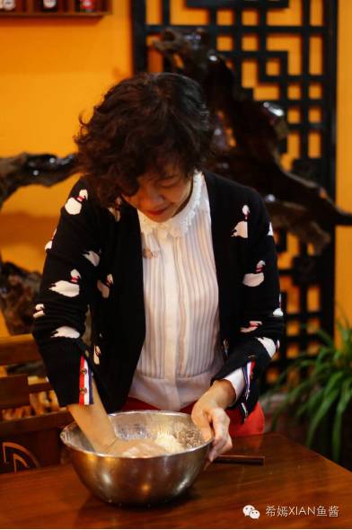 希嫣第一网红丁妈在和面,那眼神,专注极了。