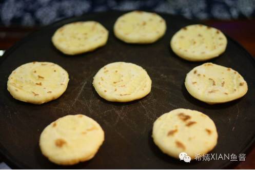 五分钟,锅盔出炉了。这金黄的色泽,是不是很诱人?