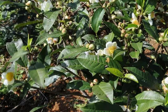 它的一个有紫芽、大叶、小叶及中叶等5、6个各具特征的茶树组成的一个群体。它在冬季开花,花期从12月到三月,而且茂盛。茶果累累,来年11月成熟。