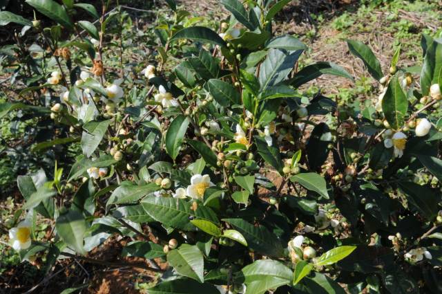 从其外观同样可以看出原种六堡茶是较为“野”性的品种,其茶果多,茶花盛,茶芽少;嫩叶无毫毛或者很少毫毛;叶片革质肥厚不易揉捻成条索。