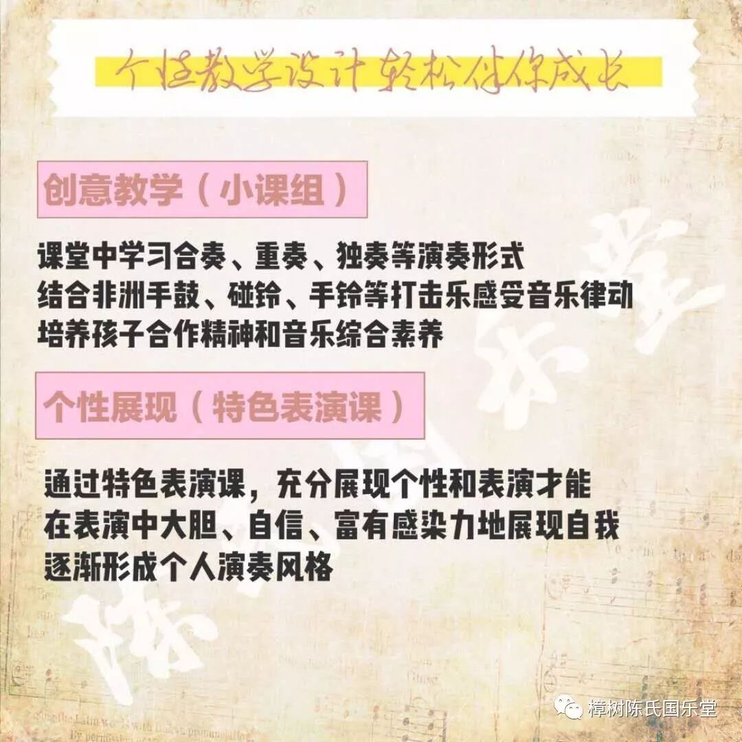 樟树陈氏国乐堂为陈氏琴行品牌形象店,风华国乐,用心传承十四年,是江西省最具影响力的高品质艺术连锁培训机构,致力传播国乐文化,以传承国乐办学宗旨,江西爱乐民族乐团演奏家打造品牌教学。系统的8+1艺术特色课程体系,优雅的文艺氛围,多元化的学生交流活动,快速提升孩子的综合能力,线上线下家长学员互动平台,丰富的网络教学资源提供每个学员。