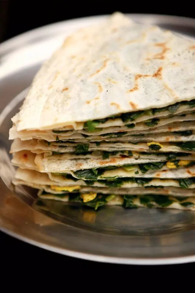 是西安带馅的面点中做得最洋气的,薄皮大馅,皮脆韧得恰到好处,馅不带汤却软嫩有汁,汁不往外流,干干净净、不油不腻,堪称“伟大”的馅饼。取不易出汤的菜做馅都好吃,比如菠菜、茄子等。