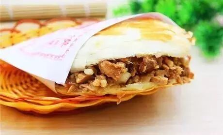 老潼关肉夹馍,馍干、脆、酥、香,肉是肥而不腻,除此之外,最大的特色是吃老潼关肉夹馍时一定要配鸭片汤。老潼关肉夹馍原名烧饼夹馍,传说当年李世民食过连赞“妙、妙、妙,吾竟不知,世间有此美食矣”。