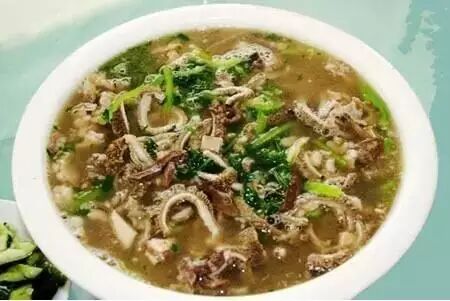 杂肝汤里都是羊杂碎,口感特好,汤香,杂肝有特殊的香味。羊杂肝汤食用时将馍泡入,也可以就着汤吃,冬天吃暖身养胃。