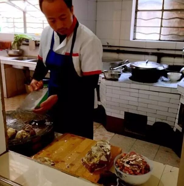 掰好交给师父,师傅根据你选的肥瘦状况将羊肉切好,码在碗中,然后在肉汤之中泖热。